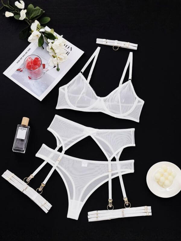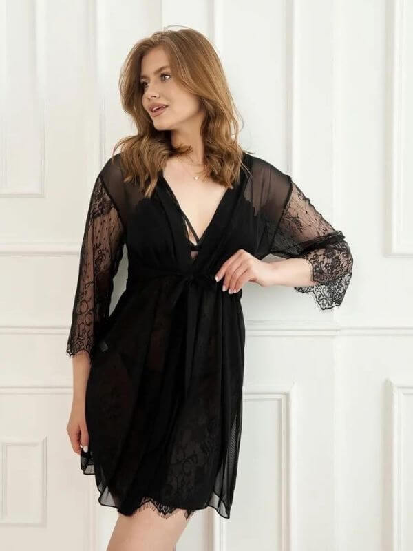 Babydoll Mesh Robe 3 Pieces Nighty Set