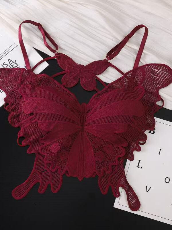 Embroidered Butterfly Lace Bra