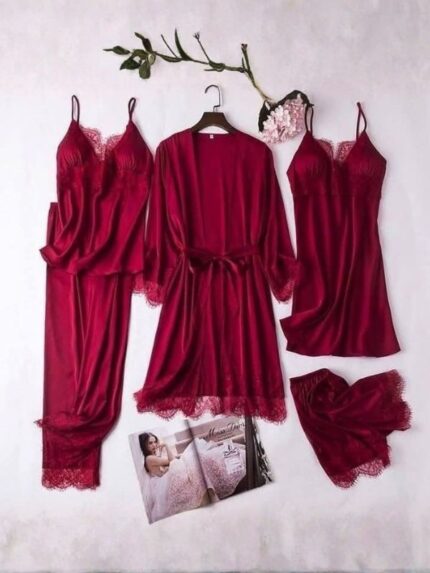 Embroidered Flower Mesh Two-Piece Night Dress