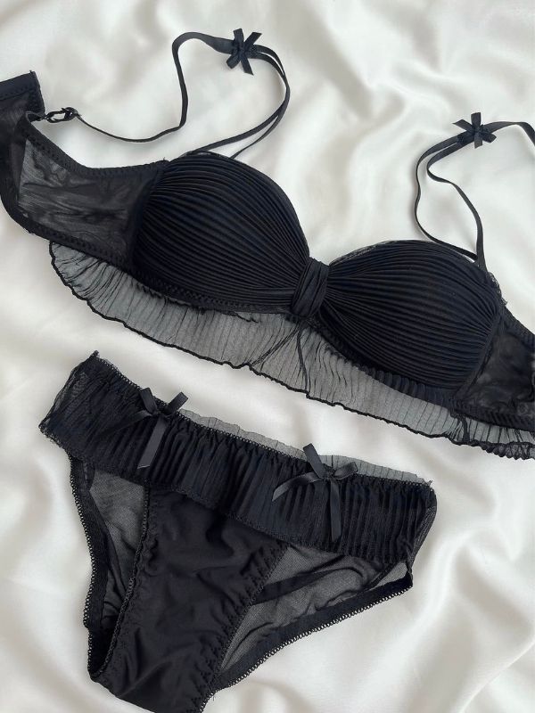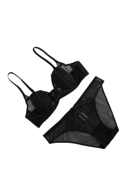 Premium Flower Transparent Bikini Set – Black