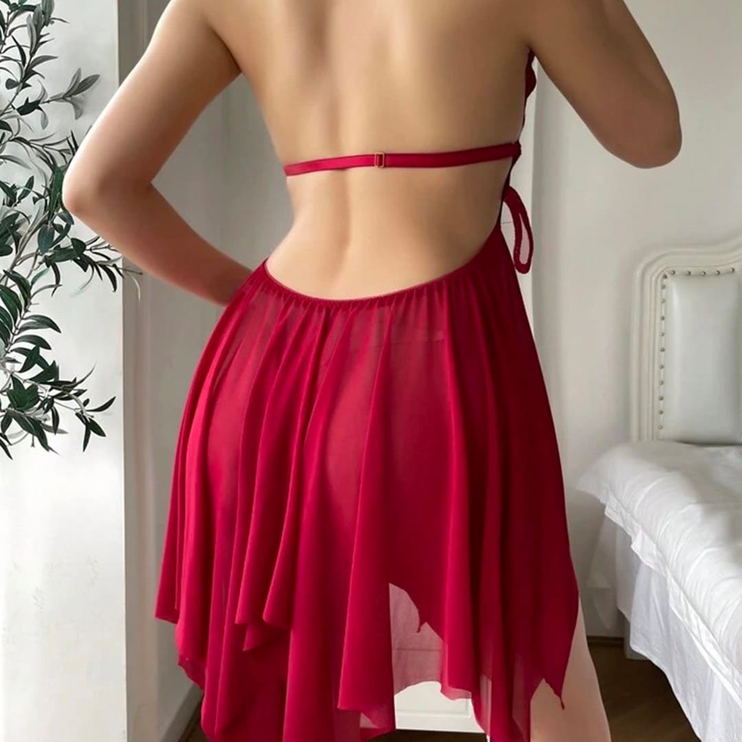 Premium Front Opening Mesh Nighty Red