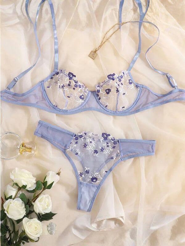 Premium Flower Transparent Bikini Set- Lavender