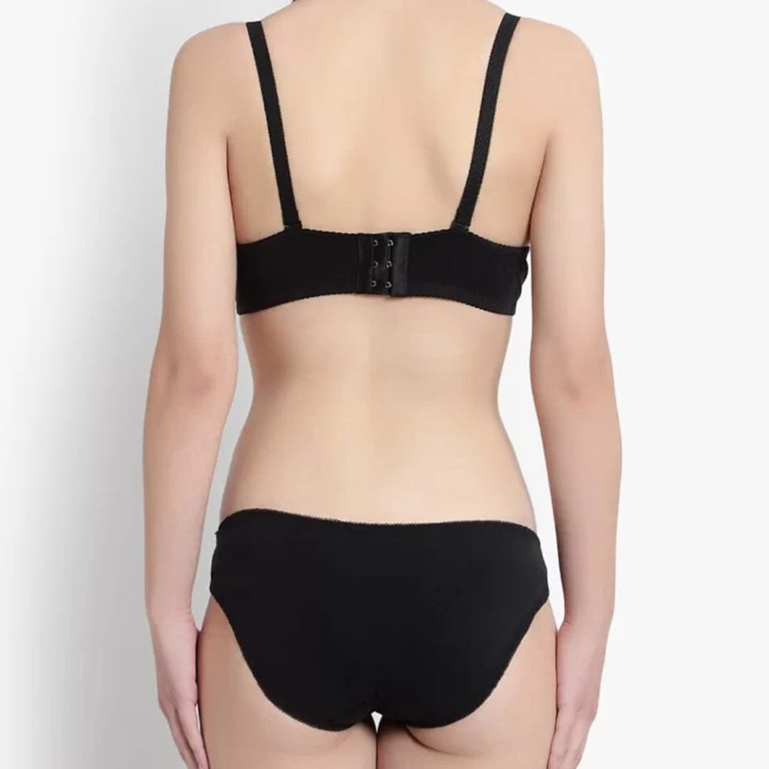 • Back hook closureBriefs Details: Solid mid-rise design, Elasticated waistband, Double-layered gusset
